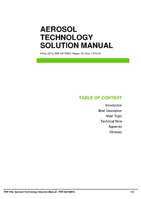 Download aerosol technology solution manual Kindle Editon By Click Button. aerosol technology solution manual it’s easy to recommend a new book category such as Novel, journal, comic, magazin, ect. You see it and you just know that the designer is also an author and understands the challenges involved with having a good book. You can easy klick for detailing book and you can read it online, even you can download it